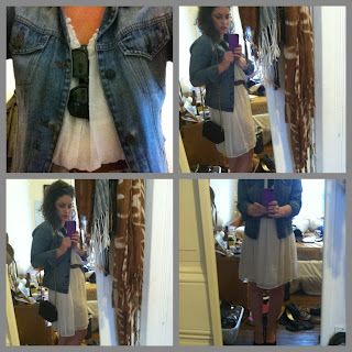 | Featured Office time v. Nighttime. Dress: Same one, duh! Belt: Thinner, still brown w gold hardware. (Lil bro's from an Easter outfit yearssss ago.) Bag: Chanel imitation from Jewish Temple Sale. (Love this bag!) Jacket: Hollister denim circa '04. Staple staple staple |